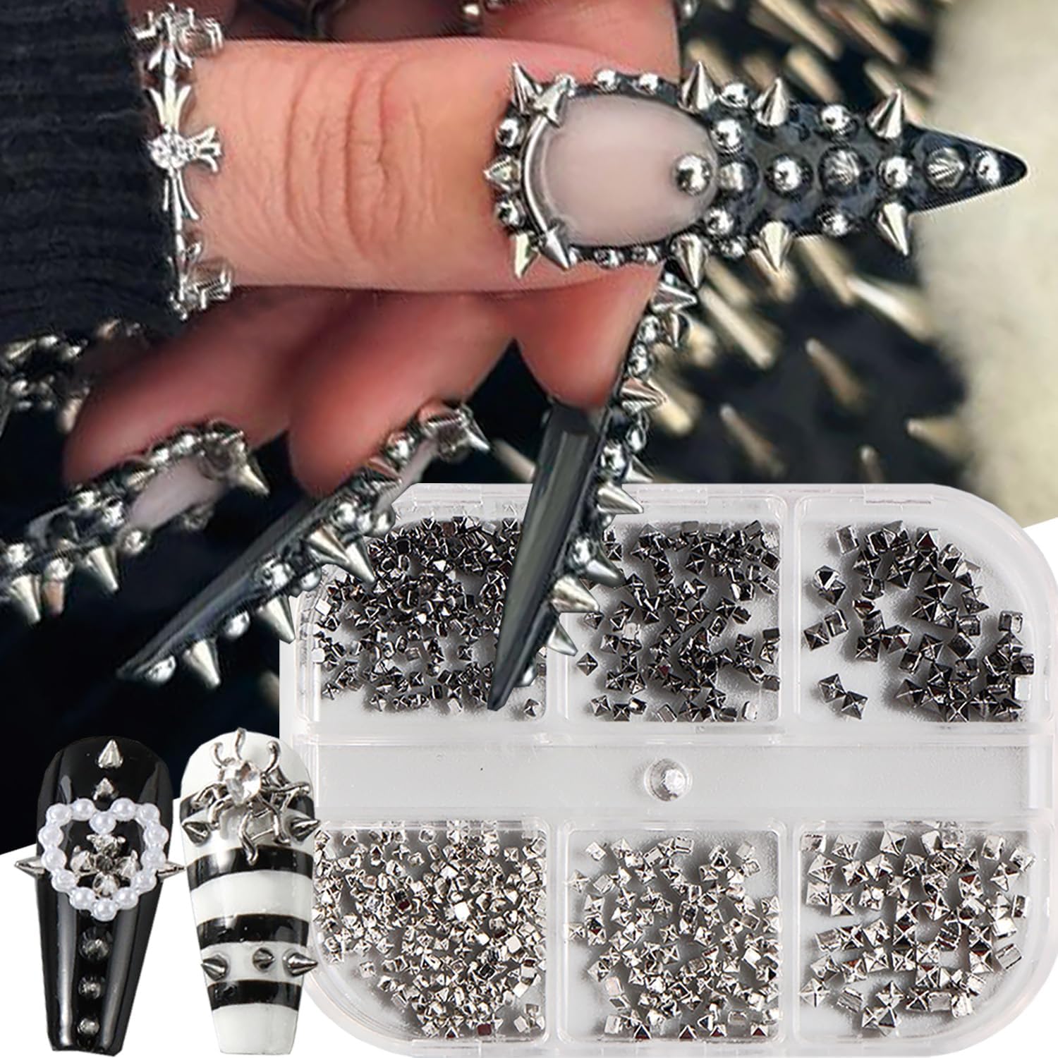 Quantity: 6 Grids Mixed Sizes Goth Nail Rhinestones